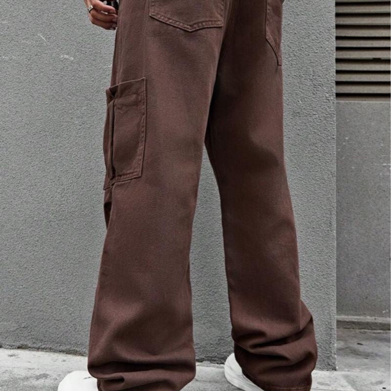 Brown Straight Leg Pants with Pockets